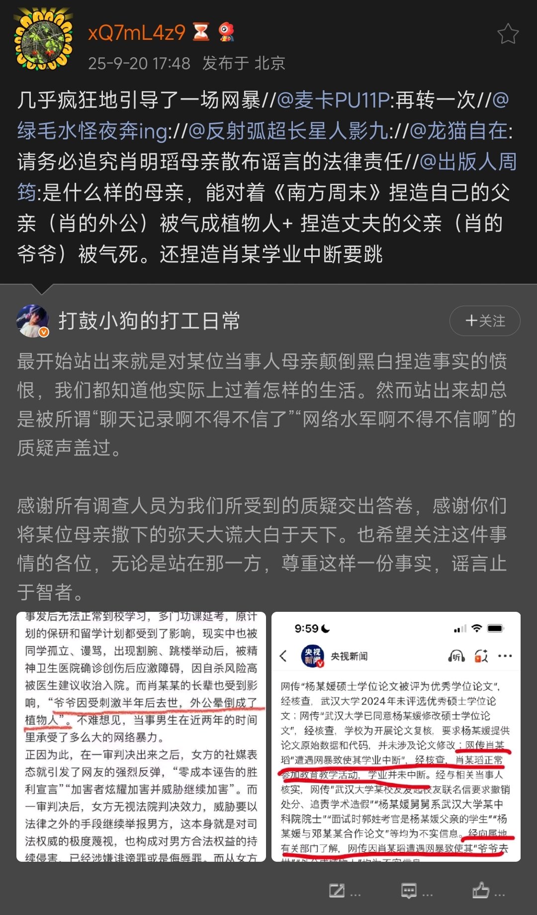 耐人寻味的一点是,到诉讼后期,肖母强力后援,但杨同学却没见到有家人站出来支持她,她好像就一直是自己在微博上吐槽。长期压力巨大又缺乏后援,那么当她拼尽全力一搏时,难免无法控制自己的情绪。就此而言,从事件发生以来的这两年里,在这么心绪难平的情况下,她居然还能完成硕士论文,已经算得相当不容易。
