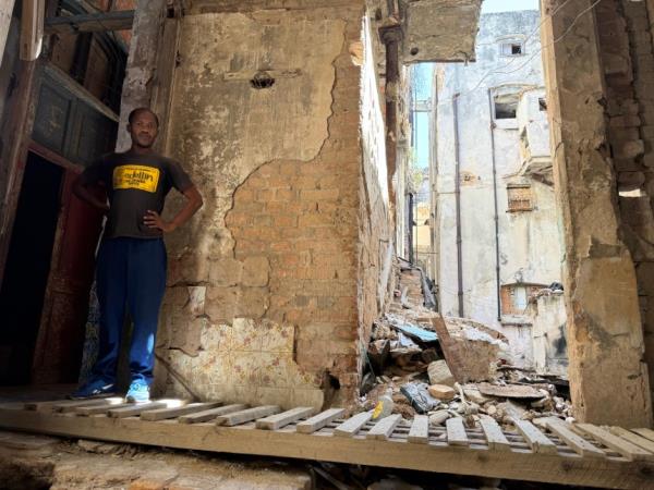 - ▲ 拳击教练兰迪站在几乎要倒塌的哈瓦那自家门前。/朴国熙特派记者