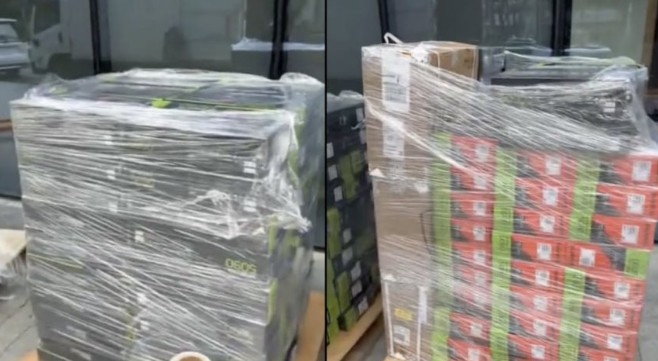 - ▲ 大批禁止对华出口的英伟达GPU产品出现在中国市场的场景。/Reddit截图