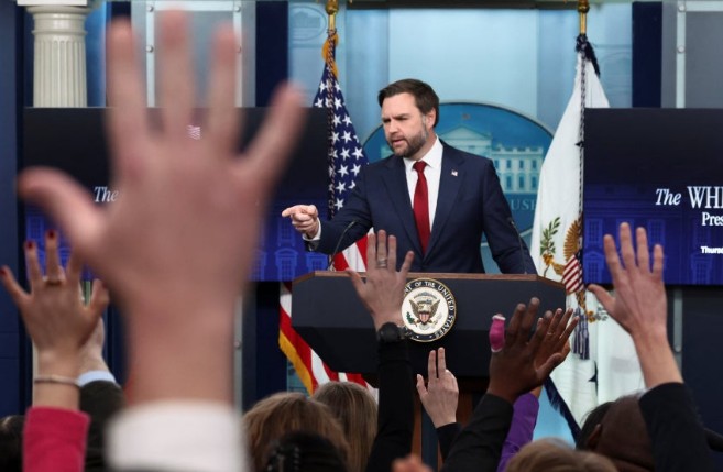 - ▲ 8日,美国副总统J.D.万斯正在白宫新闻发布会上接受提问。/路透社,韩联社