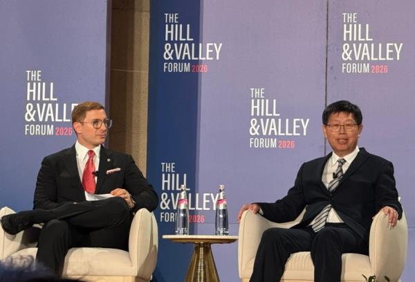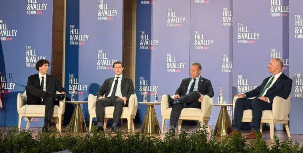 - ▲ 24日,在美国华盛顿特区举行的山谷论坛上,(从左至右)137 Ventures代表克里斯蒂安·加勒特、OpenAI首席运营官(COO)布拉德·莱特卡普、民主党众议员乔什·戈特海默、共和党众议员约翰·穆勒纳尔正在进行小组讨论。/华盛顿=金恩中特派记者