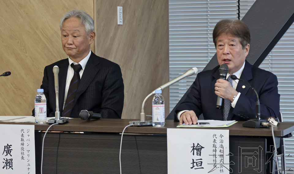 【共同社1月6日电】日本造船龙头企业“今治造船”(爱媛县今治市)6日在东京召开记者会,介绍了把排名第二的日本联合造船(JMU、横滨市)收为子公司的情况。今治造船社长桧垣幸人表示“为了生存下来,必须在国际竞争中胜出”,希望通过业界整合与政府支援,同已领先一步的中韩同行抗衡。