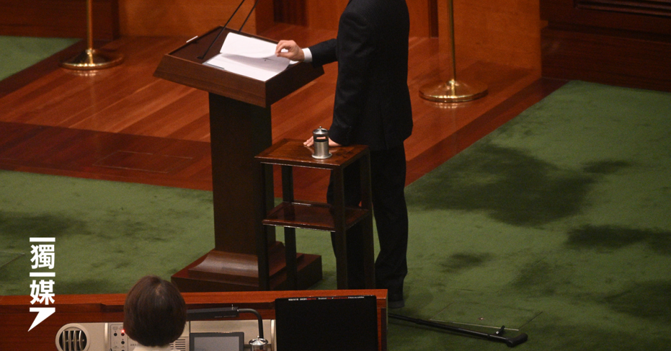 【獨媒報導】特首李家超今早為第八屆立法會議監誓,連同監誓後的致詞,全程約一個半小時。李家超在監誓期間,身旁放置了一個茶几,並不時將左手放在茶几上「借力」支撐身體,另外茶几旁亦擺放了一支拐杖。不過李家超在進入和離開議事廳時,亦沒有使用拐杖。