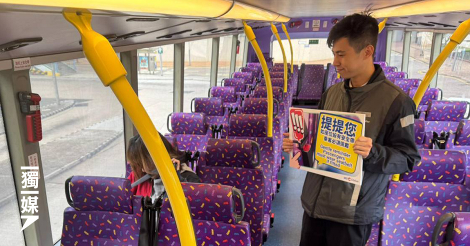【獨媒報導】今日(1月25日)起,乘坐巴士等必須配載安全帶,違者最高可罰款5,000元及監禁三個月。城巴表示,為配合新例,今早起加派前線人員於各主要巴士總站、口岸及機場等地點,提醒市民及遊客在上車後須佩戴安全帶,並增設流動告示牌,於初期加強推廣。