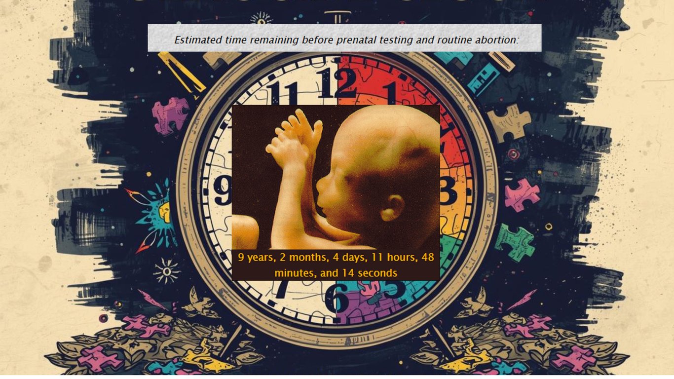 設計簡潔有力:一個顯示十年倒計時的時鐘,標題寫著「在產前測試和例行性流產前剩餘的時間」。