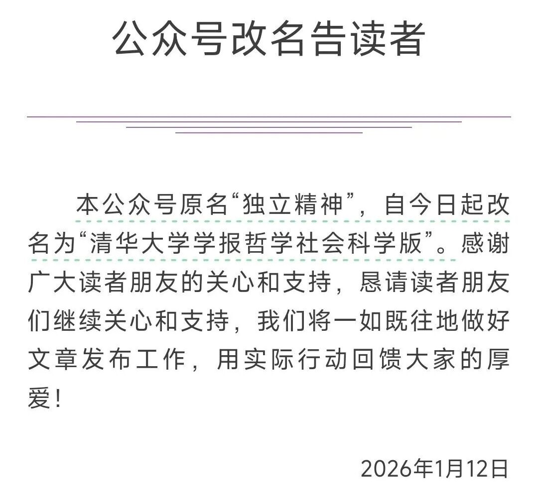 诚然,“独立精神”原本也就是一句话,它既无法约束知识分子都能遵行,甚至不能确保他们都能准确理解,遑论做到。是不是留着作为一个公众号的名字,除了象征意义之外,原本也无关紧要,然而它之所以改名(或“被改名”),恰是因为我们都知道:哪怕只是象征,也自有其意义。