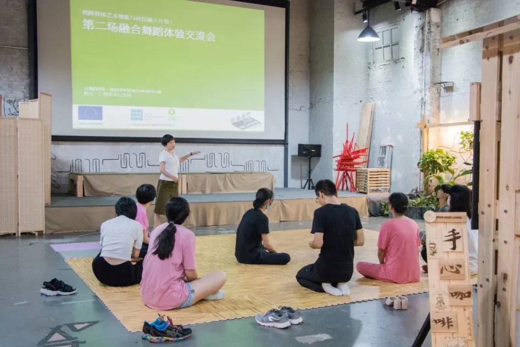 2017年,恭明中心推出了一个“导师培养计划”。当时,能够教授共生舞或类似形式舞蹈的老师只有丸仔。组织者也希望培养更多在融合领域有特长的导师,比如应用戏剧、共生舞、即兴音乐等都开始了招生。那一次我参加的是应用戏剧,因为我首先就把舞蹈最先排除,我觉得我跳不了舞。第二个排除的是音乐,我的手也弹不了乐器之类的。可能真的是一种缘分,由于当时报名应用戏剧的人数不足,就无法开班。那时候还有一位同事,是一个残障伙伴,她邀请我来做导师。